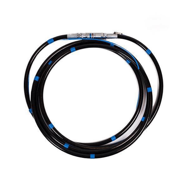 The armored hose is a antistatic hose with grounding. It also has a water tube attached for water supply to the grinder.